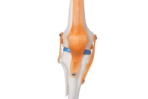 Aan de voorzijde van de knie bevindt zich de knieschijf of patella. Bij het strekken en buigen van de knie werkt de schijf als een soort katrol.